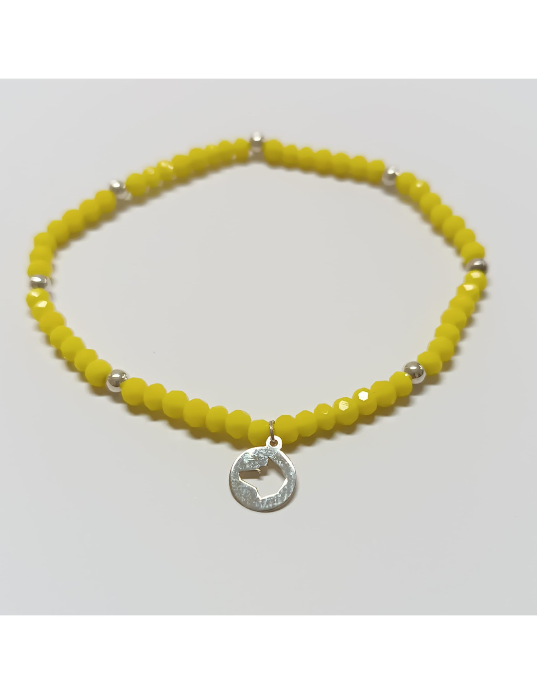 Pulseira elástica com pedra sintéticas e medalha em prata