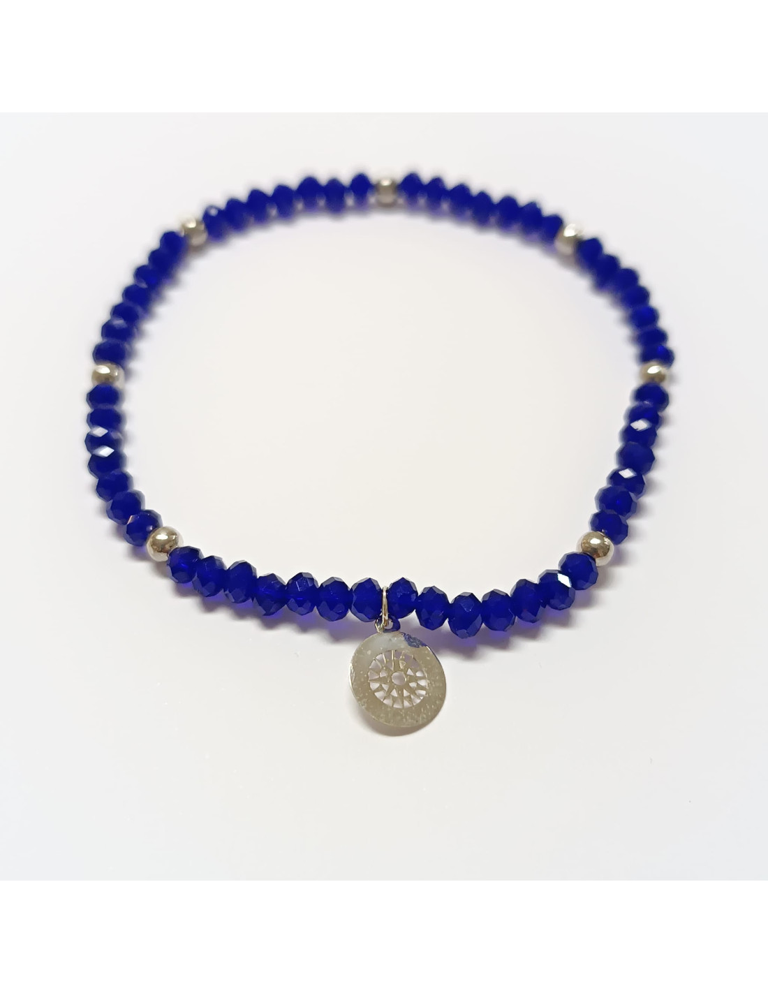 Pulseira elástica com pedra sintéticas e medalha em prata