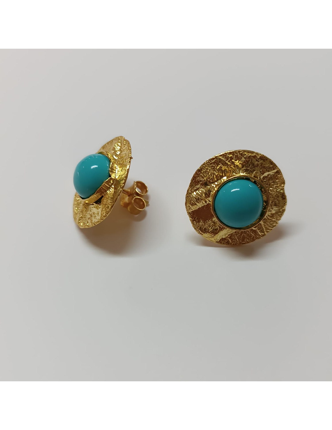 Brincos redondos prata dourada 925 com centro e pedra azul