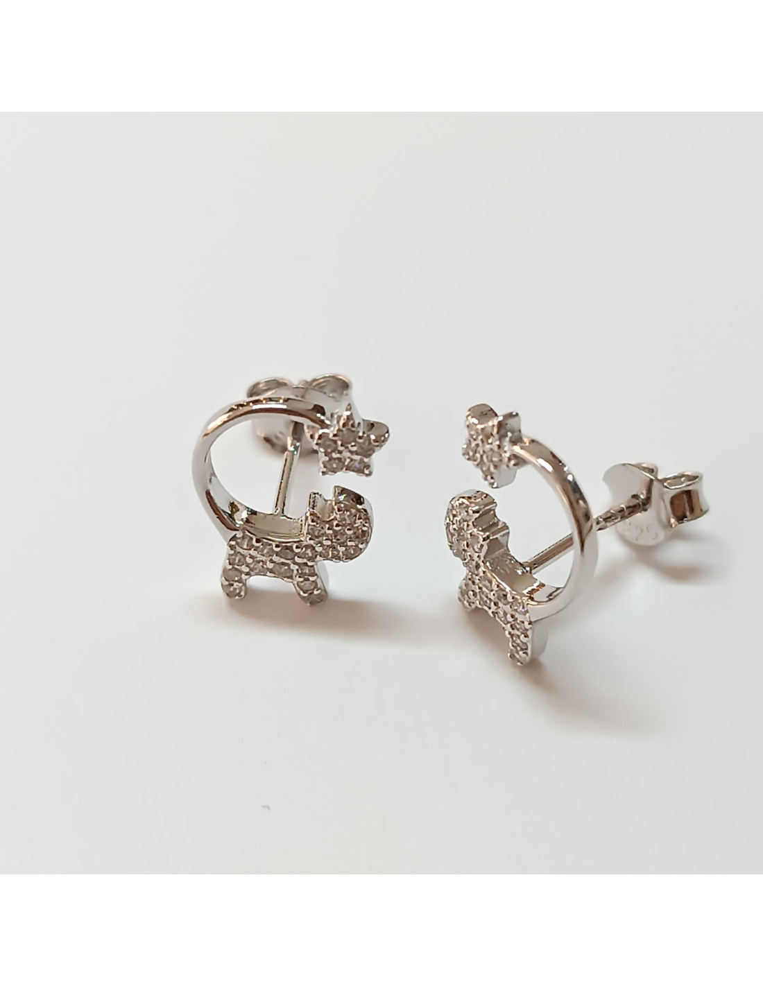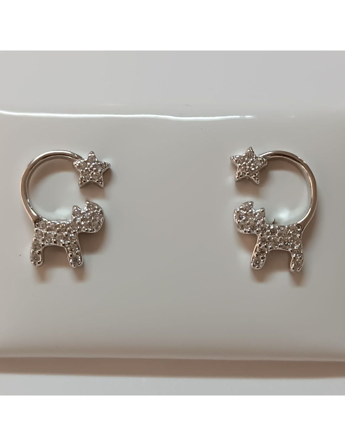 Brincos prata 925 Gato com rabo estrela com zircónias