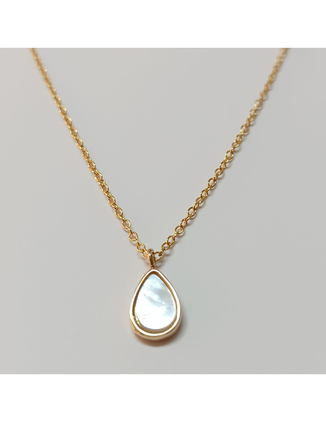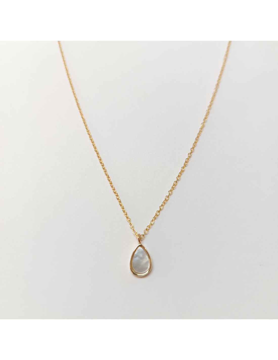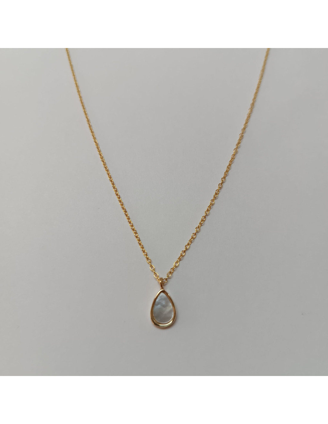 Colar prata 925 dourada com gota em madrepérola