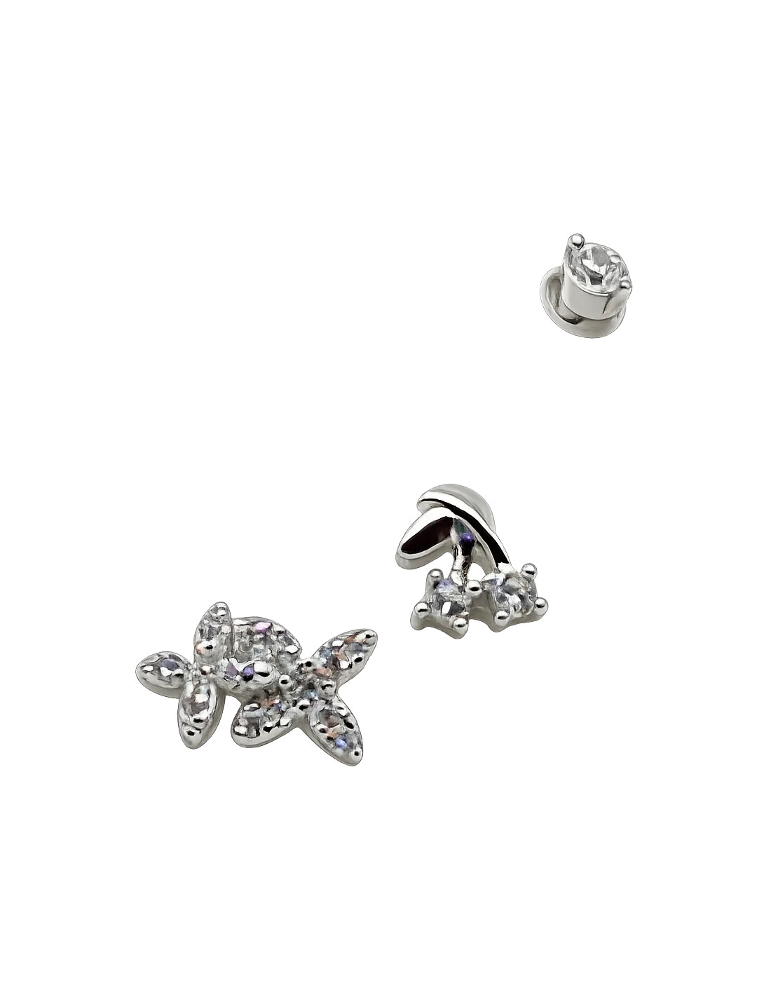 Conjunto de 3 brincos em prata 925 - flores e solitário