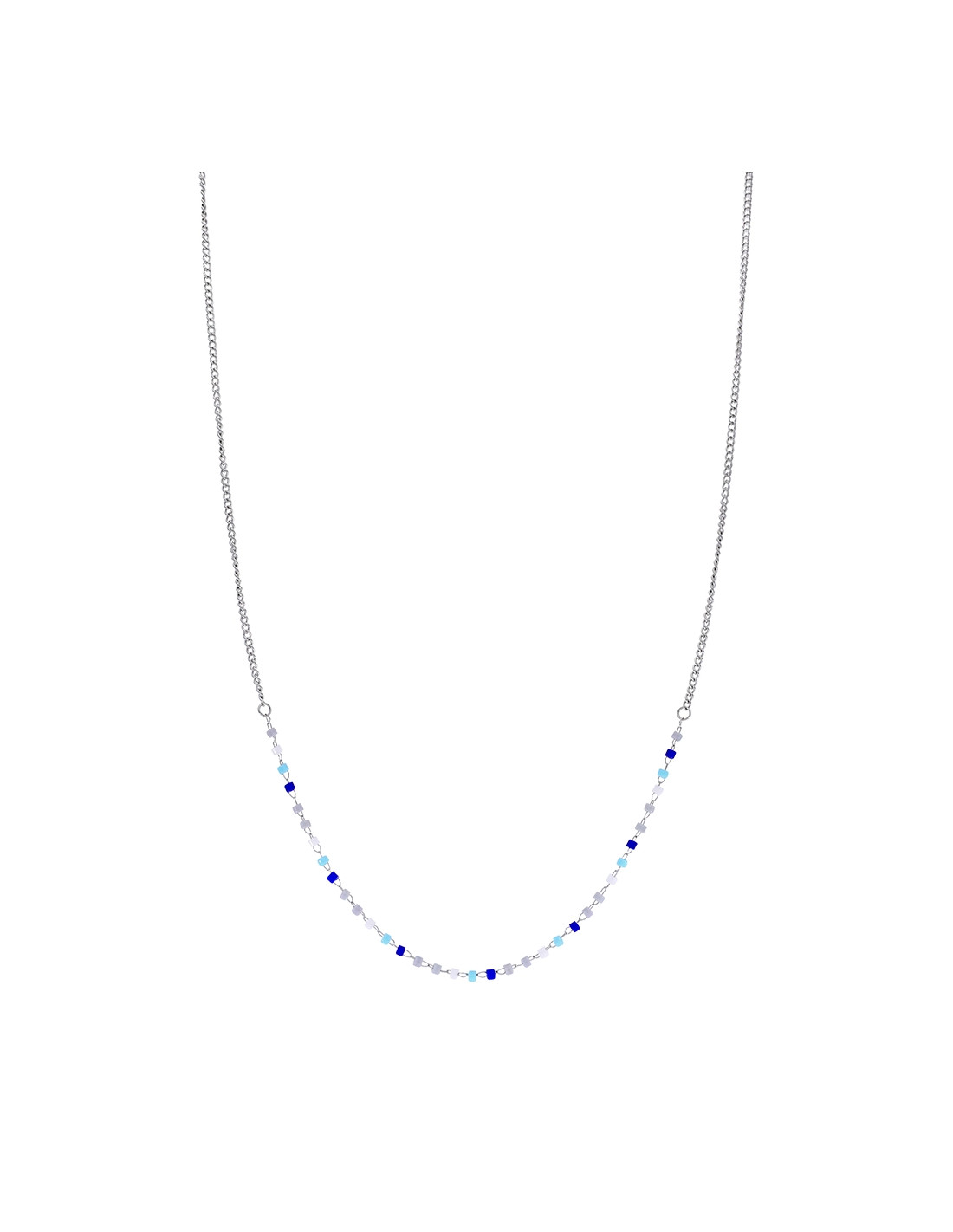 Colar em aço cor prata com pedras azuis